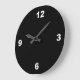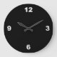 A simple wall clock with a black background and large white numbers marking the 12, 6, 9 and 3. Click Customize It to add your custom text or images, change background colours and more.