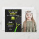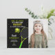 Celebrate your child’s birthday with these stylish Black Background Tennis Birthday Invitations! Featuring a bold tennis design with a sleek black background, these customizable invitations allow you to add a personal photo for a unique and fun touch. Perfect for a tennis-themed birthday party, these invitations will bring an energetic and competitive vibe to your little one’s celebration. Order now to make your child’s birthday a smashing success!