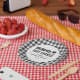 Get ready to celebrate a little bundle of joy with our delightful BBQ baby shower paper plates featuring black typography and black gingham border.