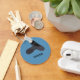 Create a small personalized gift that's perfect for boys who love ballet. This keychain features an illustration of a pair of ballet shoes in black and charcoal grey set against a blue background with a name below in black lettering. It can also be used as a personalized backpack dangler accessory.