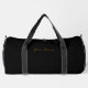 Introducing our sleek black duffle bag, a must-have for basketball lovers! With a bold basketball logo on one side, it shows off your passion for the game. Personalize it by adding your team name or the recipient's name on the other side, making it a special gift. This durable bag is perfect for carrying basketball gear or as a stylish travel companion. Get ready to hit the court or travel in style with our customizable black duffle bag!