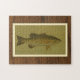 This piece of arwork will please any fish amateur. The painting represents a black bass swimming into green water. In this image, the brown borders makes it the perfect decorative art piece.