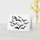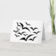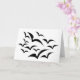 This cute Halloween card features a collection of simple images of bats flying together in a cloud pattern. The bats are black and the background is white. Kids are sure to love this cute design. Inside it says Happy Halloween in scary black text.