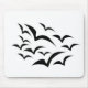 This mousepad features a collection of simple images of bats flying together in a cloud pattern. The bats are black and the background is white. Kids are sure to love this cute design.
