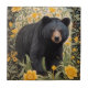 Black Bear And Yellow Buttercup Flowers Tile