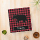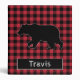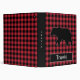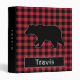 An outlined black bear with a red and black buffalo plaid pattern covers the front and back of the binder, with a black spine. Text can be written on the spine and in the name plate on the front.