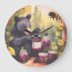 Black Bear gathering blackberry jam Large Clock