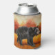 A cute black Bear taking a stroll through a field of bright fall coloured foliage.