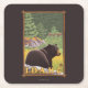 Black Bear in Forest - Idaho Square Paper Coaster
