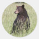 American Black Bear standing on his hind legs to look for danger in a field of Timothy grass.