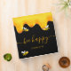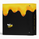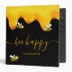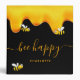 A chic black background decorated with golden dripping honey. The text: Bee Happy with a golden hand lettered style script with swashes. Personalize and add your name.
