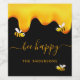 A chic black background decorated with golden dripping honey. The text: Bee Happy with a golden hand lettered style script with swashes. Personalize and add your name, family name. For summer parties, weddings, backyard BBQ's.