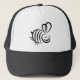 Simple black line illustration of a stripey bumble bee flying in the air. Image available on various gifts and products.