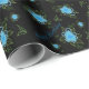 Designer birthday, or any occasion gift wrap with blue floral art, text can be personalized, or text is removable. The black background can be changed to any colour.