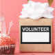 featuring title “volunteer” in white bold sans serif font with white blank space for your name on black background.