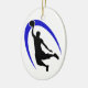 This personalized ornament is great for the basketball player, coach, or fan! It shows a dramatic black silhouetted basketball player in process of dunking the ball, with a bright blue swirl design behind him. The back of the ornament has a smaller version of the image, with four text fields for your custom text. *Clip art used in this design is copyrighted by Encore Software, Inc., which permits use to its licensors. All rights reserved.