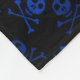 Black fleece blanket with blue cartoon skull and crossbones pattern. Text can be personalized from the product page with any string of letters, numerals or text symbols, other fonts are available.