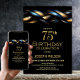 Black Blue Gold 75th Birthday Party Invitation