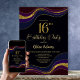 Black Blue Gold Glitter 16th Birthday Party Invitation