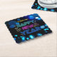 Black & Blue Midnight Sparkle Neon Glow New Year Paper Coaster
