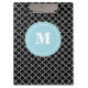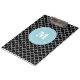 Show off your style in a fun way with this black and light blue quatrefoil modern and trendy personalized clipboard.