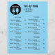 This eye-catching Restaurant Take-Out Menu flyer features a vibrant blue background, creating a fresh and artistic vibe that instantly draws attention. The soft black font blend calming blue evoking both sophistication and warmth—perfect for modern eateries or cozy cafés.