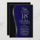 Invite your friends and loved ones with this modern black and blue surprise 18th birthday party invitation. The customizable text area in this invitation template allows you to effortlessly include all the necessary details for your special birthday celebration, including the date, time, venue, and RSVP information. A variety of paper types and corner styles are available for your unique invitations, along with the option to download if you prefer a digital format.