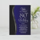 Invite your friends and loved ones with this modern black and blue surprise 80th birthday party invitation. The customizable text area in this invitation template allows you to effortlessly include all the necessary details for your special birthday celebration, including the date, time, venue, and RSVP information. A variety of paper types and corner styles are available for your unique invitations, along with the option to download if you prefer a digital format.