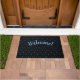 This unique black and blue Tribal-influenced pattern doormat features the words "Welcome" on the front, but you can customize that text and change it to your family name, a different greeting, or remove it altogether. This makes a great all-occasion gift for Christmas, birthdays, or housewarmings.