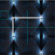 An abstract painting of blue on black has been modified into a geometric pattern, and is printed on cotton fabric. It gives the effect of lights.