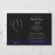 Invite your friends and loved ones to help celebrate someone's special birthday with a surprise 70th birthday party with this modern black and blue wine glass invitation.