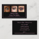Elevate your professional image with this sleek black business card designed for the modern makeup artist. Three photo spaces across the top let you showcase your artistry or favorite client looks. On the back, list all your social media. This card promotes your beauty brand with style and confidence.