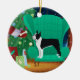 Black Boston Terrier and Santa's Gift Ceramic Ornament