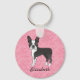 Black Boston Terrier Dog On Pink Hearts And Name Keychain