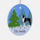 Black Boston Terrier in Christmas Forest Ceramic Ornament