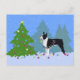 Black Boston Terrier in Christmas Forest Holiday Postcard