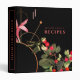 Family recipe binder for organizing your family's recipes, meal planning or other subject. Features a stylish botanical cherry design with an abstract geometrical backdrop in a modern colour palette with bright red cherries and green accents on a black background with custom coordinating text.