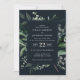 Rustic modern black navy blue chic watercolor floral wedding invite and details card. With beautiful navy blue, black and sage green fern, foliage, grass and eucalyptus watercolor invitation and details card. This modern wedding invite is sure to set the style for your big day.