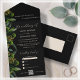 Dark moody all in one wedding design, featuring a deep emerald green woodland greenery border on a black background. With the added feature of a personalized QR Code that can be linked to your wedding website URL. Click the personalize button and add your website URL to the area provided and a brand new unique QR code will be generated on the design, that will direct your guests to your wedding website to RSVP online.