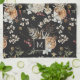 Black Botanical Holiday kitchen towel. Introduce a personalized touch to your kitchen with our monogrammed kitchen towels from the Black Boho Botanical Christmas Holiday Card Collection. Featuring exquisite watercolor artwork of winter botanicals on a sophisticated black background, these towels combine practicality with festive elegance. Monogram them with your initials to add a unique and charming element to your holiday kitchen decor.