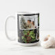 Beautiful photo collage Christmas mug featuring holly, berries, pine cones, branches, snowflakes and falling snow. Easily personalize this botanical Christmas mug with your photos.