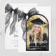 Celebrate her milestone moment with this elegant black bow graduation invitation, designed to beautifully showcase a senior portrait on the front and detailed event information on the back. Featuring a soft black watercolor bow, graceful arch photo frame, and modern script typography, this invitation perfectly balances timeless charm with contemporary style.