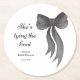 Black Bow She's Tying the Knot Bridal Shower Round Paper Coaster