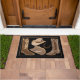 Decorate with western rodeo style with this door mat. The design features brown and tan cowboy boots and a western hat with horseshoes on a black background. This design is original art by Phyllis Dobbs and is available with other colour backgrounds and on coordinating products in a western theme.