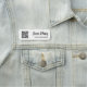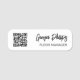 Stylish white QR code name tag with the name in a black brush script. QR code name tag for an employee personalized with name, title, and your qr code.