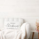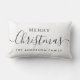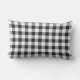 Custom-designed decorative lumbar pillow featuring "Merry Christmas" modern typography design with your family name on festive black and white buffalo check pattern.