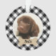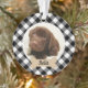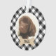 Retrouvez vos animaux de compagnie préférés sur votre sapin de Noël ! Cet ornement festif présente une photo préférée de votre chien (ou autre animal de compagnie) avec une plaque d'os de chien bronzé qui peut être personnalisée avec un nom et un chic buffle noir et blanc chèque arrière - plan à motifs plaid. Conseil : recadrez votre photo au format carré avant de la télécharger sur le site.