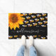 Decorated with happy, smiling yellow and black bumble bees and a large watercolored sunflower. A chic black background. Personalize and add a name. The name is written with a modern hand lettered stylie script with swashes. To keep the swashes only delete the sample name, leave the spaces or emoji's in front and after the name.