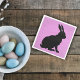This paper napkin has a sitting black bunny in silhouette form with tall ears on a pink background.