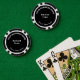 Poker chips that you can customize to put your business name, logo, city or town and state. You can use it during corporate events to advertise your business or to promote your brand name while entertaining your customers, clients or guests. Customizable poker chips that your can use to build brand name awareness while enjoying business parties. Design colours are white texts on black background. Please check the appearance on front and back sides after uploading logo and typing texts. If the appearance is pleasing to you, you can place your order now. If you need to resize and move the logo and texts to fit on the poker chips, please change in the design tool. You can also change the font style, font colour and the inner background colour in the design tool.